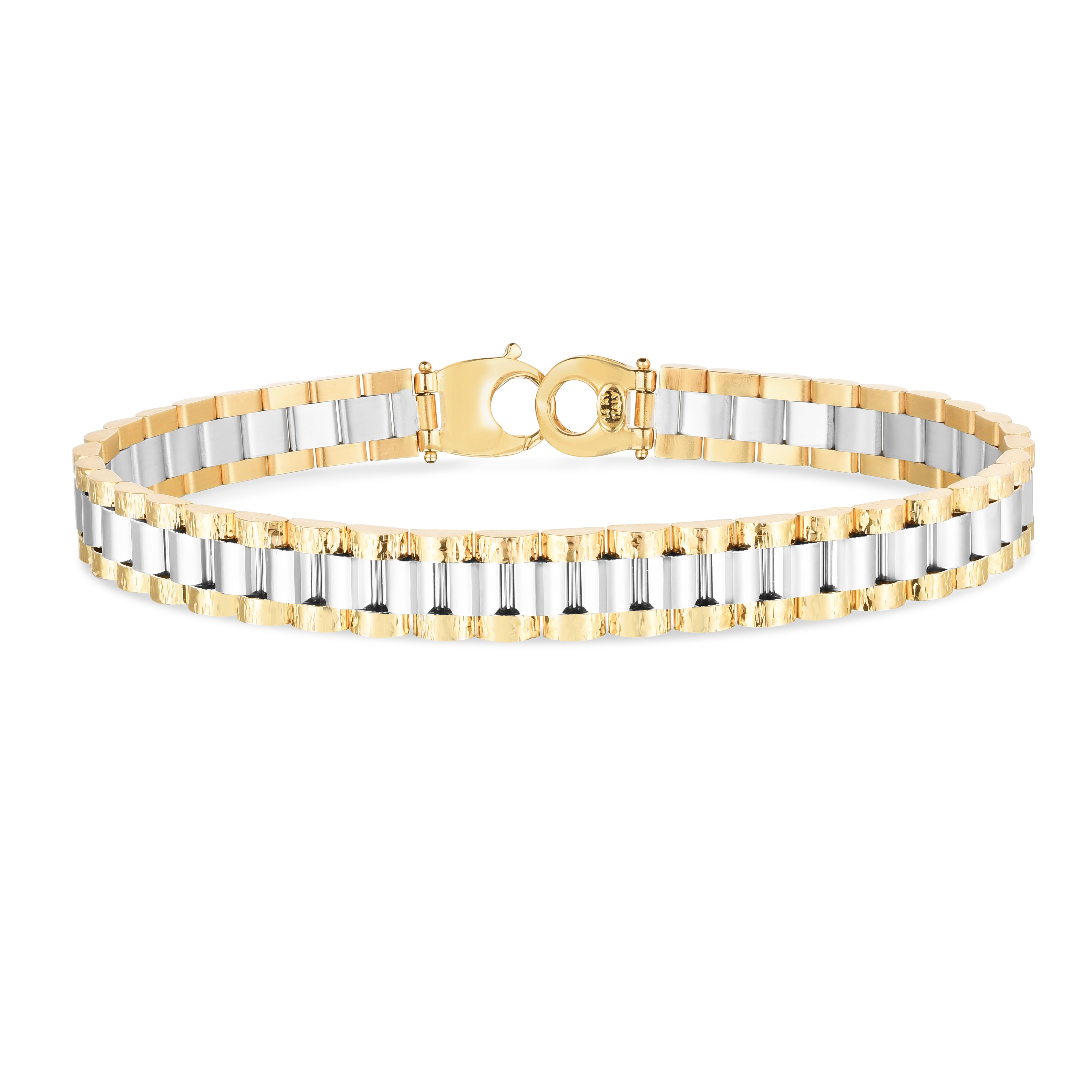 14K Two-tone 8.2mm High Polish Railroad Bracelet