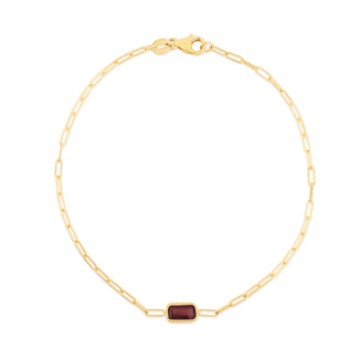 14K Garnet Paperclip Bracelet
