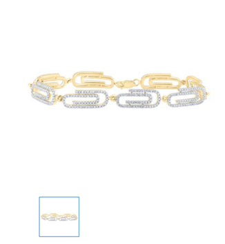 14K YELLOW GOLD ROUND DIAMOND PAPER CLIP FASHION BRACELET 1-7/8 CTTW