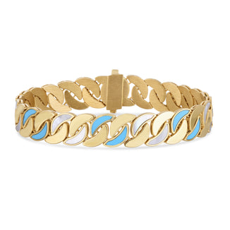 14K Gold Curb Turquoise MOP Inlay Bracelet