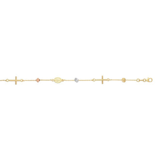 14K Tri-color Gold Polished Cube & Cross Bracelet