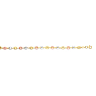 14K Tri-Colorr Gold Puffed Mariner Link Bracelet
