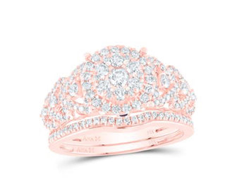 14K ROSE GOLD ROUND DIAMOND VINTAGE BRIDAL WEDDING RING SET 1 CTW