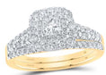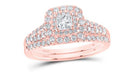 14K WHITE GOLD PRINCESS DIAMOND HALO BRIDAL WEDDING RING SET 1 CTTW (CERTIFIED)
