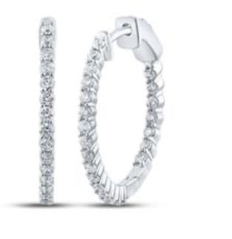 14K WHITE GOLD ROUND DIAMOND INSIDE OUTSIDE HOOP EARRINGS 1 CTTW