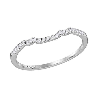 14kt White Gold Womens Round Diamond Contoured Slender Wedding Enhancer Band 1/10 Cttw