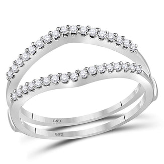 14kt White Gold Womens Round Diamond Ring Guard Wrap Enhancer Wedding Band 1/4 Cttw