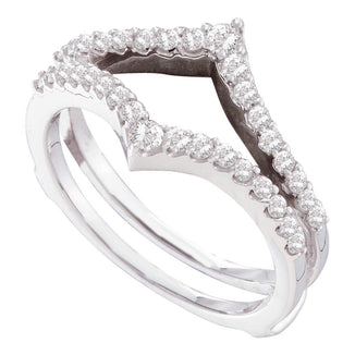 14kt White Gold Womens Round Diamond Ring Guard Wrap Enhancer Wedding Band 1/2 Cttw