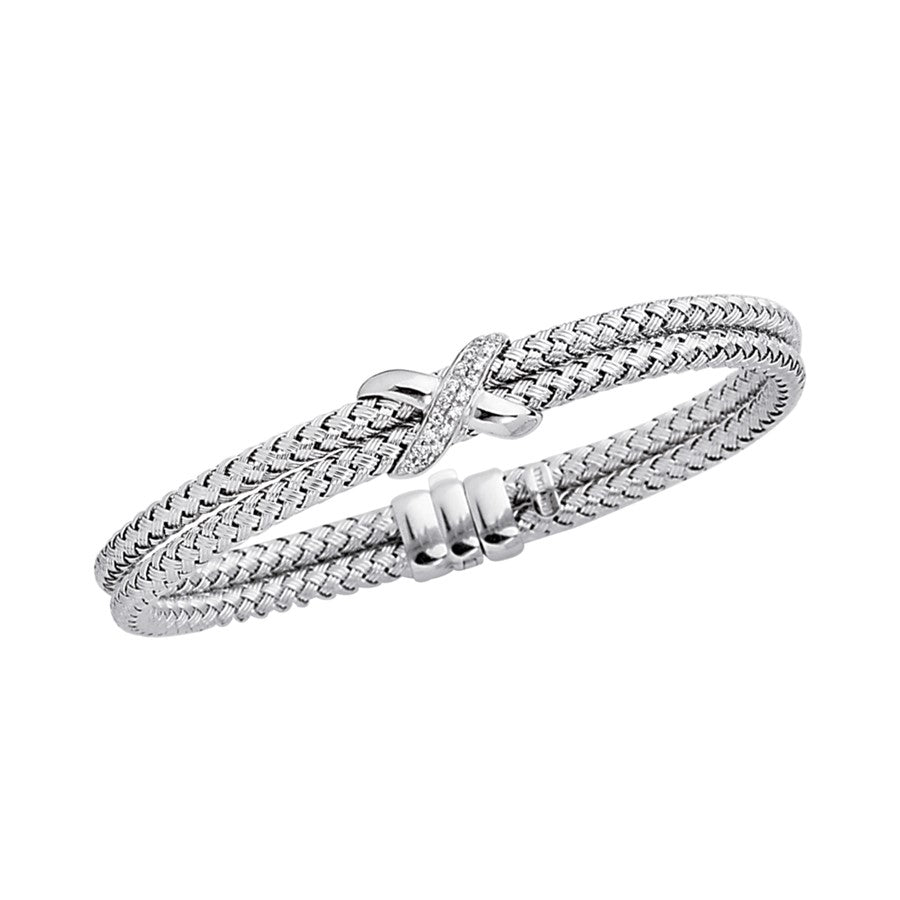 14K White Gold 7.25" .18ct Diamond Station Woven Bangle